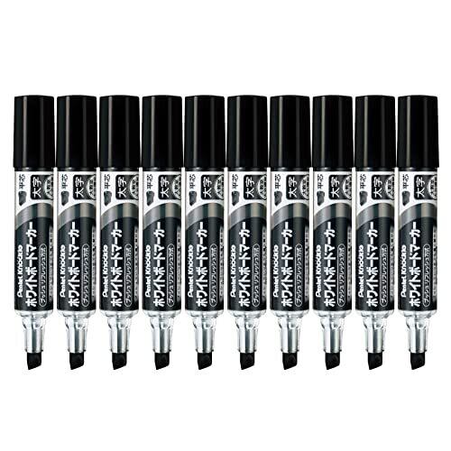 ぺんてる ホワイトボードマーカー ノックル EMWL6W-A 平芯太字 黒 【10本セット】