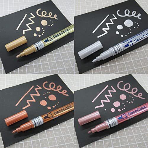 ペン先:細字 色:ゴールド・シルバー・カッパー・ローズゴールド インク:油性顔料 描けるもの:紙・プラスチック・木・金属・ガラスなど 製造:日本製
