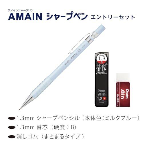ぺんてる シャープペンシル エントリーセット AMAINシャープ 1.3mm ミルクブルー XAM13ST-SH2