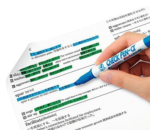 【特長】「キレイに仕上がる」チェックペン 【キレイに仕上がる理由1】明るい色:だから文字が読みやすい 【キレイに仕上がる理由2】裏面ににじみにくい:だからキレイで読みやすい 【ペン先】ツインタイプ(太字3.5~4mm/細字1.2mm) 【ジャストフィット/しなるペン先】太字はペン先がしなるから平面にも曲面にもしっかりフィット