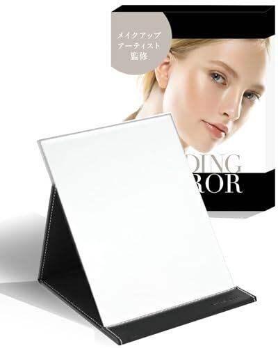 WIDREAM【メイクアップアーティスト監修】角度自在調整&他社より1サイズ大きい鏡面の折りたたみ折立鏡 鏡 卓上鏡 スタンドミラー コンパクトに折りたたんで持ち運びにも◎(役立つメイクminiブック付属) (黒, ML)