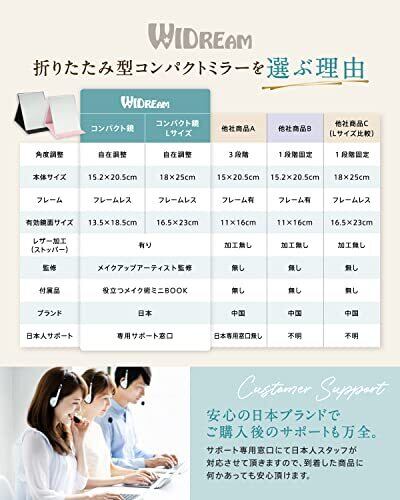 ✔️いつでもどこでもメイクタイムを快適に!! メイクアップアーティスト監修で使いやすさを追及した折りたたみ式の卓上鏡です。 ✔️サイズ表記違いにご注意下さい。WIDREAM卓上鏡は他類似ブランド品より1サイズ大きくリーズナブル!! ✔️滑り止め加工を施されたPVCレザーを採用しているので角度調整が自由に行えます。 ✔️軽量・コンパクト&シンプルで高級感のあるデザインなのでどのようなファッションにも合わせやすく持ち運びにも◎ ✔️もらってうれしい メイクアップアーティスト安達えり編集「役立つメイク術ミニBOOK」付属