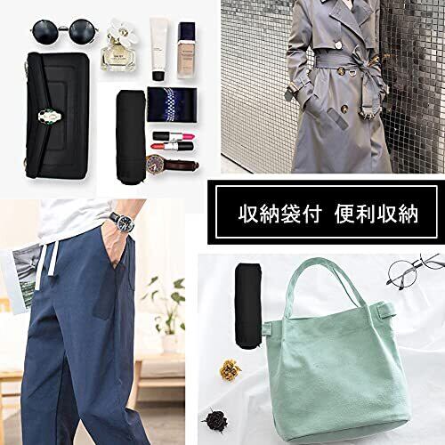 超軽量ミニポケット傘 厚手UVカット 五つ折りたたみ傘 晴雨兼用 日傘 折りたたみ傘 収納袋付属 (厚手UVカット-黒)