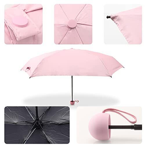 商品仕様:重さ235g 展開直径90㎝ 折りたたみサイズ17*5㎝ 素材:ゴム「柄」+高品質のアルミ合金「傘立て」+高密度NC布 UPF:50+ 折りたたみ傘:五つ折 カラー:ブラック、ワイン、ブルー、ネイビー、ピンク 重さは235gのみ、折りたたみ後17cm、通常の折りたたみ傘より20%短い、ポケットやバッグに簡単に入れることができ、お出かけと旅行などはとても便利です。これは小さくて軽い折りたたみ傘です。 傘立ては6本の強くて高品質のアルミ合金肋骨を加えました、錆を防ぎ、傘の強度を2倍にします。強い風にも折れにくい、優れた耐久性が特徴です。