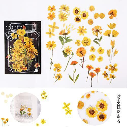 YOVOY 164枚 コラージュ 素材 シール 花シールセット フレークシール ステッカー 大容量 透明 可愛い 花 植物 手帳素材ステッカー ガラス瓶と花