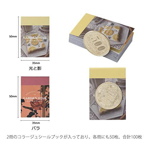1.2冊のコラージュシールブックが入っており、各冊にも50枚、合計100枚のフレークシールがあります。シールのサイズが3.5cmX5cmで、持ち運びにも便利です 2.絵柄とデザインは一枚たりとも重複せず、花、空、景色があり、自分のお好きによって自由に選べます。絵柄も豊富で品質もよい、量にも長く使えできます。お好きな方はぜひお試してください! 3.和紙製の手帳シールです。背面に粘着剤がついているので、直接に貼り付けることができて、とても便利です。しかも、粘着性もよくて、キレイに剥がれます。 4.これらのアートステッカーは高品質の紙でできており、明確なパターンで印刷されており、色あせや脱落が起こりにくいため、一定期間、色が生き生きと新鮮になります 5.帳デコ、スケジュール帳、日記帳、ガイドブック、メモ用紙にと、封筒、小袋やお手紙の封かんシールとして使ったり、贈り物、プレゼントのラッピング、手作りお菓子や小物の包装、空箱などどこでも飾ることができますのデコシールとして活躍しています。【ご注意】PC環境により実際のお色とは若干異なる場合がございます。あらかじめご了承ください