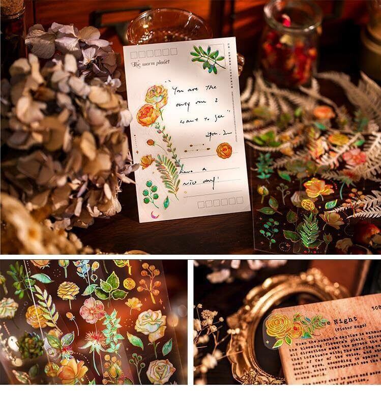 コラージュ 素材 シール かわいい フレークシール 大量 手帳 DIYの飾り ステッカー (花1)