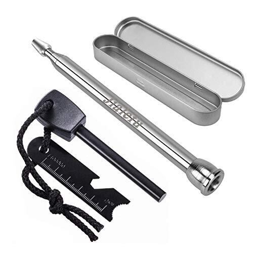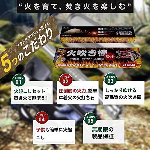 火吹き棒 火起こし ふいご 焚き火 筒+火打石 火打ち石 ファイヤースターター 着火具 バーベキュー用 BBQ ツール セット サバイバルツール