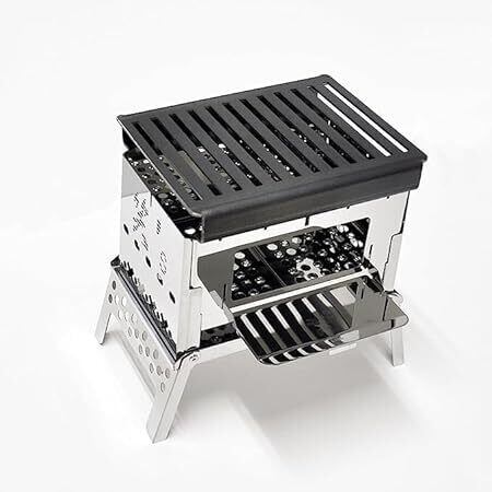 笑's コンパクト焚き火グリルB-6君 3点セット(B6君/専用ハードロストル/グリルプレート)SHO-002, 炭, バーベキュー, 卓上, 小型, 軽量, コンパクト収納, ステンレス, 焚火台, 日本製, 工場直売, FACTRY PRIDE