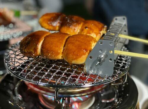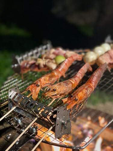 ・ソロキャンプ、1~2人向け用です。串焼上手のコンパクト版 ・日本製 ・2020年11月 実用新案取得済 第3229044号 ・これまでに類を見ない、画期的な機能を持つ串焼き保持具。・焼き鳥、焼き魚等を、じっくり、ゆっくり、外はパリパリ、中はふっくらと焼く事に最適(炭、火加減は重要) ・サビに強い、頑丈!ALL ステンレス製(SUS304-t1.0) 串の長さ、径によって変わる角度を、簡単に調整可能! ・特殊な穴加工により、具材のバランスによる回転を阻止できます! ( 鉄、SUS 等、鋼材の串は除きます) ・推奨串サイズ 1mm ~ 6mm(径) ・焼き上がった串焼きを、縦にさして、一時保管又は保温が可能!