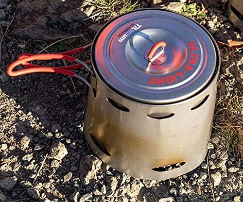 高効率なEVERNEW POT 専用風防 900/ECA422 サイズ : 径15.5x高さ12.5cm 収納サイズ : 径3.2x長さ12.7cm 質量 : 24g 素材 : チタン