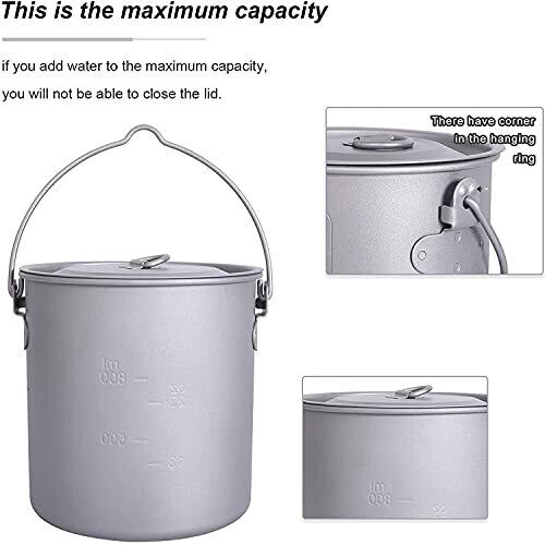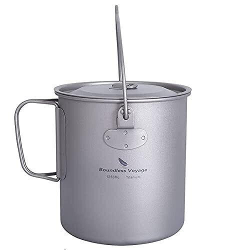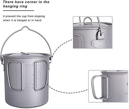 チタンシングルマグ マグカップ 500ml 900ml 1100ml 1250ml (蓋付き)折りたたみハンドル 直火 超軽量 アウトドア キャンプ用チタンmug (吊りカップ1250ml) | RoseRiot