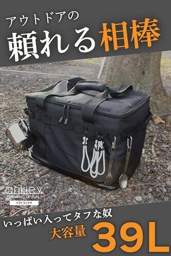 【大容量で細かいアイテムもわかりやすく収納】ankley(アンクレー) コンテナボックス ソフトコンテナ キャンプ収納ボックス アウトドア キャンプギア 39L 軽量 (ブラック)