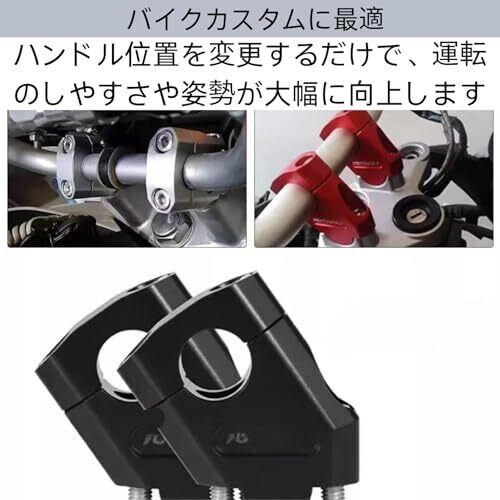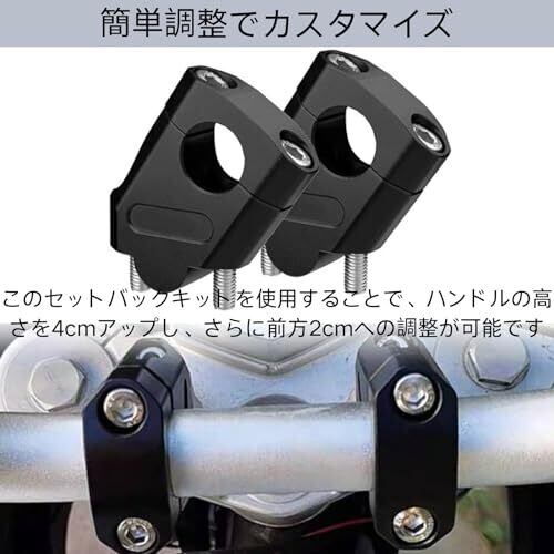 簡単調整でカスタマイズ:このセットバックキットを使用することで、ハンドルの高さを4cmアップし、さらに前方2cmへの調整が可能です。ライディングポジションを自分好みに変更し、快適な運転をサポートします。 適合車種が豊富:YBR125、SR400/500など、幅広い車種に対応。32mm〜34mmのピッチのパイプハンドル装着車両に取り付け可能なため、多くのオートバイやATVで使用可能です。 セット内容と工具付き:セットには、専用ボルト×4、六角レンチ×1が付属しています。これで、すぐに自宅で簡単にハンドル調整を始められます。 耐久性のあるビレットアルミ製:頑丈で信頼性の高いビレットアルミ素材を使用しており、長時間の使用にも耐える耐久性を誇ります。 バイクカスタムに最適:ハンドル位置を変更するだけで、運転のしやすさや姿勢が大幅に向上します。ツーリングや日常のライディングをもっと快適にしたい方におすすめです。