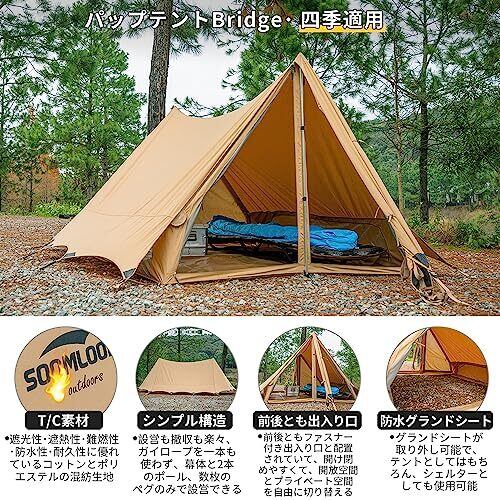 SoomloomテントBRIDGE440x250x150cmアウトドアキャンピング T/C素材 日除け ポリコットン 日陰濃い 遮熱/耐火/難燃/耐久