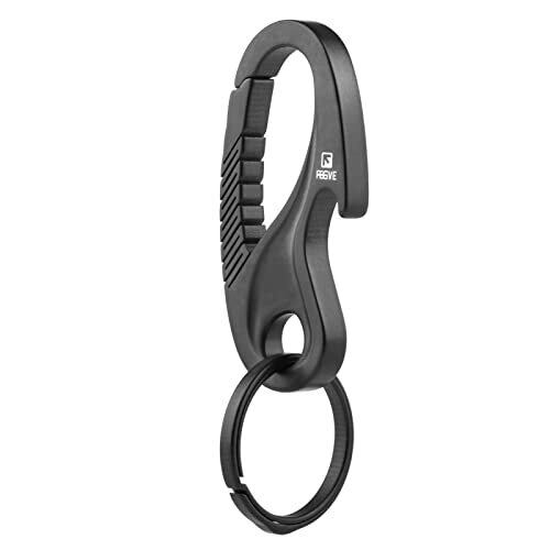 TISUR チタン カラビナ 栓抜き キーホルダー メンズ おしゃれ キーリング 車 バイク スマートキー用に 防錆 紛失防止 取付簡単(ブラック/カラビナ+チタン リング)