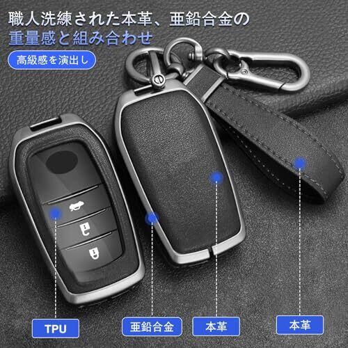 【トヨタ専用】このキーケースはトヨタのキーに基づいて設計されたので、形と同じのトヨタ鍵にも対応でき、ぴったりします。詳細は弊店の写真をご覧ください。鍵を確認して、ご買い求めください。 【優れた素材】このキーケースは正面がTPUを採用し、防水、防塵、汚れつけことが心配しなくて、ボタンを守ります。裏面やハンドストラップは職人洗練された本革を採用し、優れた耐久性があり、手触りもいいです。フレームは亜鉛合金で、硬くて抜群な耐衝撃性があり、それに防錆性にも優れています。