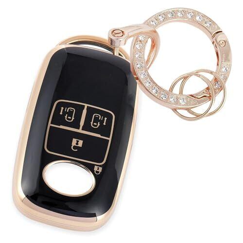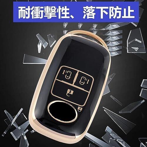 キーケース適合トヨタ ライズ ダイハツ ロッキー 新型タフト キー カバー ルーミー スマートキーケース 可愛 両側スライドドア (ゴールドブラック)
