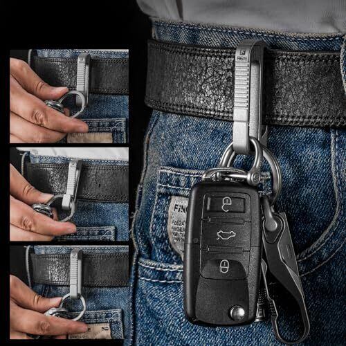[TISUR] チタン カラビナ キーホルダー メンズ ベルトクリップ キーリング付き プレゼント