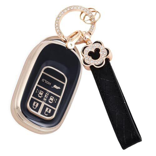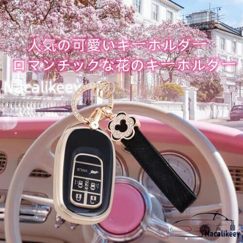[Nacalikeey] キーケース適合N-BOX カスタム JF5 JF6梅の花 キーケース新型 ステップワゴン キーホルダー適合ホンダ 新型ステップワゴン キーカバー NBOX JF5 JF6 シビック ZR-V ヴェゼル可愛の キーカバー (5ボタン,ブラック)