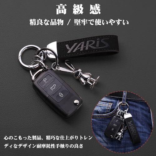 【全車種&シーン対応|ロゴ自由カスタマイズ可能】トヨタ全シリーズはもちろん、家庭・オフィスの一般的なキーとも併用可能。スエード革部分にホットプレス技術でロゴを印刷し、摩耗に強く色褪せない高耐久仕様。大切な人への贈り物に最適な上品なデザインです。 【ファッションデザイン】このキーホルダーは、シンプルなスタイルでファッションの魅力を表現しています。黒いスエードとシルバーの金属リングが完璧に組み合わされ、縁の縫い目の工芸は繊細で、全体的に落ち着いた高級感を呈しています。