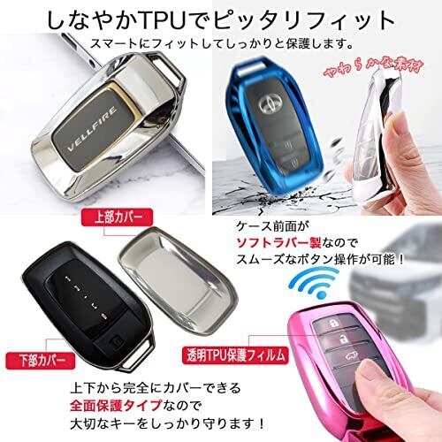 [適合車種] 新型 プリウス 60系 アルファード ヴェルファイア ハリアー ランドクルーザー グランエース RAV4 対応 パーツ ( 商品画像にスマートキーの形状を掲載。ご注文前に愛車の鍵との照合をお願いいたします ) [素材] 軽量TPU素材。愛車のスマートキーが美しい光沢のケースにしっかり保護されオススメです。。 [デザイン] キーケース は車の鍵にピッタリと適合するように設計。キーケースの美しいカーブとキーホルダーが光を反射しおしゃれと高級感を演出。スマートキー裏側ロゴが見えるのもポイントです。