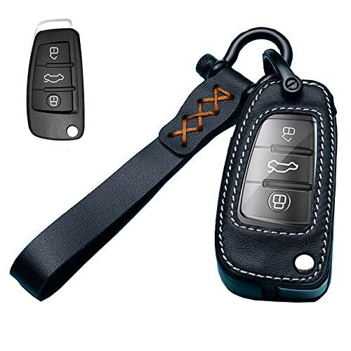 キーケース アウディ用 スマートキーケース キーカバー 3ボタン 本革 レザー アウディ 専用設計 Audi 新型 A1 A3 A6 Q2 Q3 Q7 TT TTS R8 S3 S6 RS3 等に適用 手触りいい 汚れ 滑り 傷 防止 オシャレ リモコン キーホルダー (ブラック)
