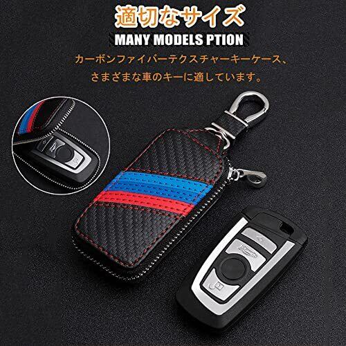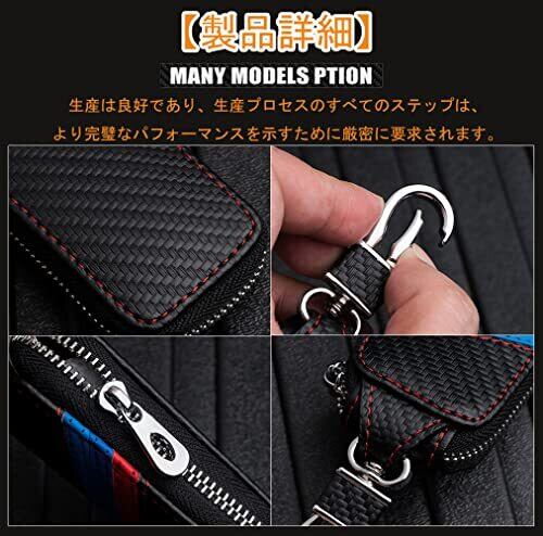 【優れるカーボンレザー】表面にツイルドパターン(綾織り)カーボン調ハイブリッドレザーを、内革にフッ素加工を施したレザー素材を配するのキーケース。カーボンレザーは見た目の美しさをもちろん、軽量、防水、摩擦性にも優れた素材です。厳しいテストにも耐え老化にも優れた創造的なキーケースです。長くご愛用いただけます。 【フルオープンジッパー】ラウンドファスナーで大きく開くフルオープン式で、鍵の出し入れがスムーズなのも人気の秘訣。軽量で手のひらに収まる、ほどよいサイズ感の使いやすいかっこいいキーケースです。