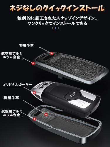 [TECART] アウディ専用 キーケース キーカバー キーホルダー スマートキーカバー スマートキーケース アウディ A4 S4 RS4 B9 A5 F5 S5 RS5 A8 S8 D5 Q7 SQ7 などに適応 本革+アルミ合金