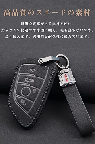 キーケース BMW用スマートキーケース BMW キーカバー 3ボタン スエードの素材 手触りいい 高級 BMW専用設計 1 2 3 5 6 7 8 シリーズ X1 X2 X3 X4 X5 X6 X7 Z4 専用 キーホルダー付き 刀型 キーホルダー