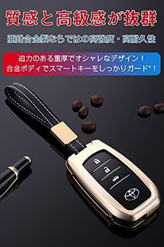 トヨタ キーケース 合金 トヨタ スマートキーケース キーホルダー トヨタキーカバー 新型 ハリアー キーホルダー2個 80系 ハイラックス GUN125 ランドクルーザー200系 ヤリス ミライ MARK 専用 2/3ボタン (ゴールド)