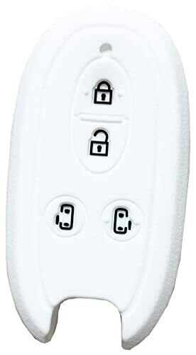 ■スマートキー(リモコンキー)に被せるだけの簡単10秒装着♪■鍵の傷防止・汚れ防止に最適です。■長年使用して傷だらけになったスマートキーに使用するのも効果的です。■専用設計でピッタリサイズ!■さらさらシリコンで手触り快適! 【スズキ用】【適合車種例】 ・スペーシア ・パレット ・ソリオ ・ルークス(※ロゴ部分は日産ロゴとは異なります) ・→ボタン数は異なりますがこちらの車種にも装着可能です。・ワゴンR ・ハスラー ・ラパン ・MRワゴン ・アルト など 上記は参考一覧です。年式グレードなどにより異なりますので必ず画像で形状を確認してください。【仕様】 スズキ車用のスマートキーシリコンカバーです。 スマートキーのキズ・汚れを防止します。 専用設計でピッタリサイズです。 【カラー】・ホワイト 【セット内容】・シリコンカバー×1 ※購入前に必ず形状を確認してください。※スマートキー本体は付属しておりません。