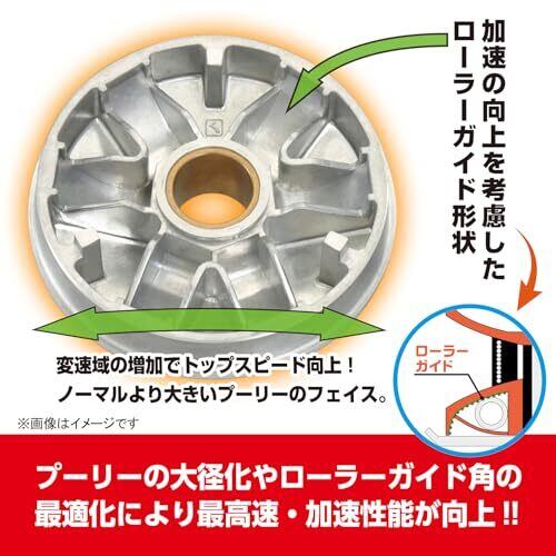 適合車種:ジョグ・リモコンジョグ:5KN全車種・5SU1~4 | ジョグ-ZR/-ZII(リモコンジョグ):5PT・5SW全車種 | ジョグ-EX/-Z スーパージョグ-Z:3YK1~6 | スーパージョグ-ZR:3YKB | ジョグ/-ZII:5EM全車種 | ジョグアプリオ:4JP9・A | ジョグ:3YJ全車種 | ジョグ-Z:3RY3 | ジョグ-ポシェ:5GD1・2 | ビーノ:5AU9・A~L | アクシス/-プロフット:3VP全車種 | ビーウィズ:3AA・5DA全車種 加速性能、最高速の向上をお求め易い価格設定でリリースするスクータードライブユニットです タイプXシリーズについて:従来品タイプIIIシリーズと比べ、性能はそのままに耐久性を高めた次世代モデルです プーリー本体の素材の変更により強度を向上 スライダーをカーボン含有46ナイロンに素材を変更し、耐磨耗性を向上。(スライダー付のみ)