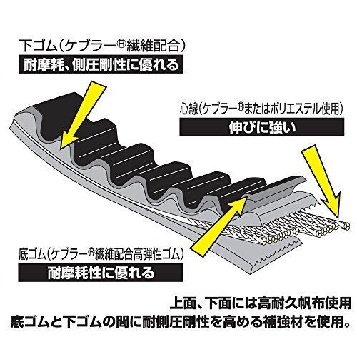 【用途】バイク用 Vベルト 【仕様1】ノーマルからチューニングモデルまで対応した強化タイプ 【仕様2】標準ゴムと高弾性耐熱配合ゴムの2重構造にすることで、ベルトスリップを軽減 【仕様3】上下のゴムにアラミド繊維を配合することで、耐摩耗性と側圧剛性の向上を実現 【適合車種】シグナスX125/SR <国内仕様5UA/28S/1YP>