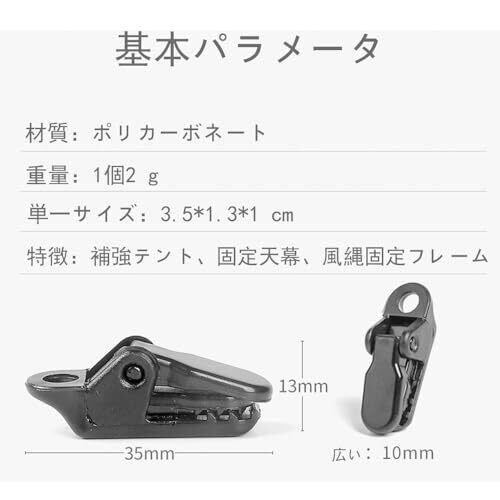 テントクリップ、ワニクリップ、テント固定クリップ、固定クリップ、ポータブルテントクリップ、取り付けやすく、強力固定クリップ、ブラック、10個セット
