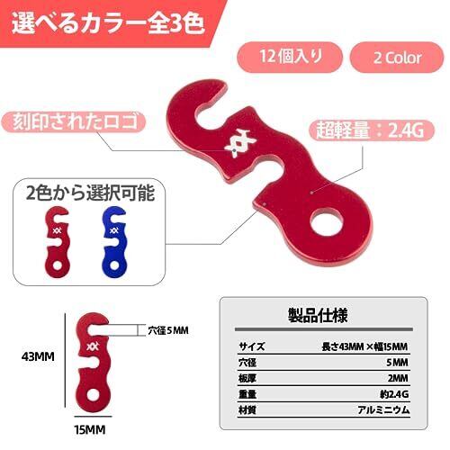 自在金具 アルミニウム AVOFOREST ロープ長さ調整 ロープテンショナー 収納用ワイヤーホルダー付 12個/20個入 ロープ止め金具 ロープ張り用 テントアクセサリー アウトドア キャンプ テント