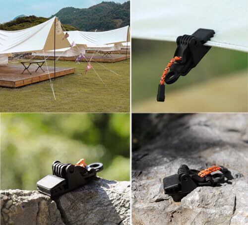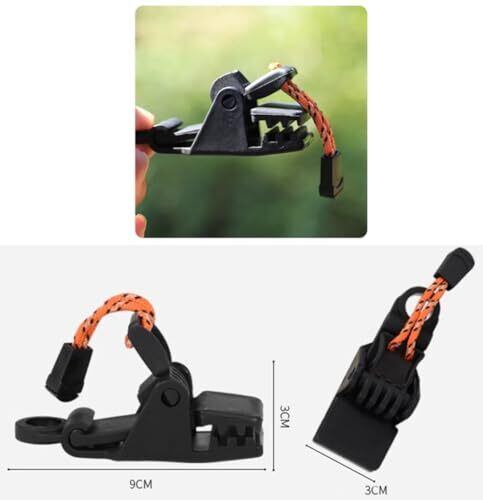 【商品仕様】素材:プラスチック、サイズ:約30☓ 30☓9mm、数量:4個、カラー:ブラック。 【丈夫&耐久】高強度のプラスチック製で、軽量で持ち運びやすいテントクリップです。特に歯のあるネジロック型は、防風性がバッチリ、ずっと安定させます。アウトドアの日差し、雨などでも劣化していない、丈夫で耐久性が高い固定グリップです。 【強力固定】 シンプル構造でしっかり挟んで固定します。 ハトメ穴がない部分でもしっかり挟み、吊ったり固定することが可能です。 【軽くて丈夫】 軽量で丈夫なプラスチック製です。 雨等で濡れても錆びる心配がありません。 軽量なので持ち運びにも便利! 【広い使用範囲】屋外キャンプテント、天幕、車/トラックカバー、自転車カバー、ボートカバー、プールカバー、日よけ、家のカバーに最適です。屋外キャンプテント、天幕などの理想的なアクセサリーです。