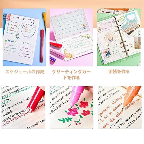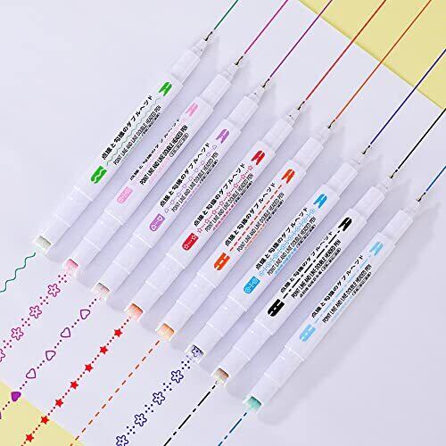【ツインヘッドペン】 ダブルニブマーカーペンのデザインで、片面はメモの記録、グリーティングカードの書き込み、線の描画に使用でき、もう片面にはさまざまな面白くてかわいいパターンマーカーがあり、かわいいパターンがメモにマークされています。 【商品仕様】 8本入り蛍光ペンセットは8色、6種類の可愛くて使いやすいローラースタンプがあります。0.4mmの細字ペン先は細かい所を塗ったり、細い線を書くのに最適です。 【細いペン先】 色付き蛍光ペン カーブ ペンは、ペン先にローリング デザインを採用しており、転がして美しい線を簡単かつ便利に描くことができ、学習や DIY アートワークに最適なツールです。 【素敵なギフト】 ソート カラー カーブ ペンは、さまざまなアクティビティやクラフトに適しており、カードの作成、メモの取り方、塗り絵、ジャーナリング、スクラップブッキングなどに最適で。お誕生日や子供の日、卒業や入学お祝い等、ちょっとした贈り物に添えるメッセージカードなども華やかに演出します。 【速乾・水性マーカー】 どちらの両端マーカーも速乾性のインクで、素早く乾き、はっきりと滑らかに書くことができます。 操作は便利で簡単、インクも速乾性で。