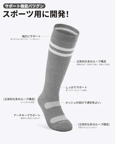 【サポート機能性バツグンでスキー・スノーボード用ソックス】Findway スキー靴下はオリジナルの進化版サポートタイプで、スキー、雪遊びなどのスポーツ用に開発いたしました。保温性と快適さを兼ね備えたスキーソックスは、足の形状に対応した立体構造+前傾姿勢シルエットや繊維原料にも「機能性」や「サポート力」を可能な限り追い込めまています。①「カフサポート」履き口が柔らかで伸びのよくきつくなく脱ぎやすいです。②「足首サポート」アキレス腱部分のサポートを重視し、スキーソックスのずれ込みを軽減しながら足全体にしっかりフィットし、安心して履かせられます。ふくらはぎ周りの筋肉をしっかりサポート、筋肉を安定させ負担を軽減できます。③「アーチサポート」土踏まずをサポート、靴下のたるみを軽減します。サポート機能が安定性をを向上しながら、スポーツ中のサポートを提供、スキー、スノーボード、富士登山やお路さん、山歩き、キャンプ、フェスなどのあらゆる冬のスポーツやアウトドアに最適です。