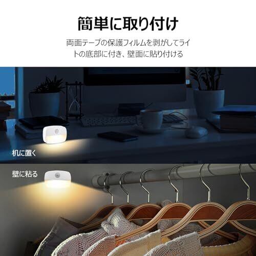 ☀【人感センサーライト】●Ledセンサーライト●暗い環境でモーションセンサーが人の動きを感知したら、自動的に点灯します。暗闇に電灯のスイッチを探す手間もなくなり便利です。★ご注意:明るい環境ではセンサーの動作を停止することになります。人がずっとその場所にいたらライトは点灯のままとなります。 ☀【省エネ*小型】Ledセンサーライトは動きが検出されないと、20秒後に自動的に消灯し、エネルギーを節約し、バッテリ寿命をより長くすることができます。 ●小型のライト本体はとても軽量で、狭い隙間にも使える省スペース設計です。思ったより小さい声もありますので、注文する前にサイズをご確認ください。 ☀【感知範囲】暗くなると120°の広角範囲とおよそ3メートルの距離内の動きを検知したら点灯します。暗い室内や廊下、階段も、安心で危なげなく移動することができます。 ナイトライトとしても使います。 ☀【取り付け場所】寝室、子供部屋、トイレ前、玄関、廊下、クローゼット、階段、キッチン、作業間、地下室、屋根、車庫、物置、赤ちゃん室、押し入れなどに最適!!停電時や災害の時にも役に立ちます。 ☀【電池式*工事不要】3本の単4型電池をご使用ください。コードレスで、両面テープ付き、さまざまな場所に簡単に設置ができます。。★ご注意:ご使用中に何か問題が発生しましたら遠慮なく注文履歴によりご連絡をお願いいたします。誠実に対応させていただきます。