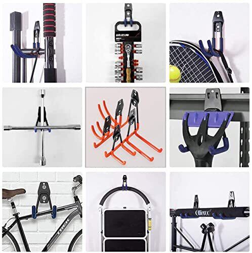 ガレージフック、12パックガレージ収納フックとハンガー、頑丈な壁掛けガレージオーガナイザー、はしご、自転車、ホースなどの道具収納 (オレンジ)