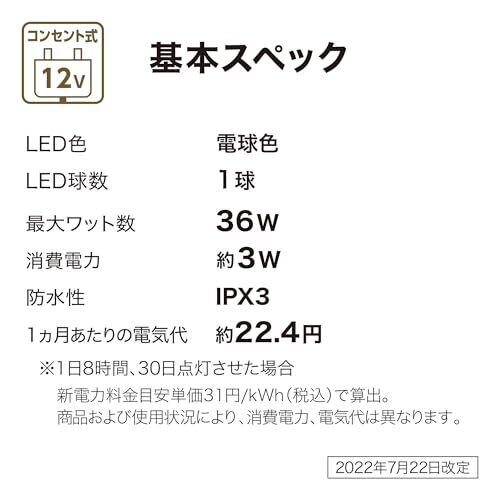 【庭のプロが 演出に使う光量】市販のソーラーライトなどでは実現できない明るさ。明暗が美しく、住まいの印象をガラリと変えることができます。それぞれのライトは用途に合わせて、エクステリアのプロが使う明るさを採用しています。 ひかりノベーションシリーズ専用の追加ライト1個入り。基本セットに付属または別売のコントローラーに接続してください。8個まで追加できます。(ライト追加数により、別売の【延長コード(5m)】か【延長コード分岐付】のどちらかをお買い求めください。) サイズ:約幅8.5cm×奥行8.5cm×高さ24cm、コード全長:約5m 重量:約0.5kg ひかりノベーションシリーズの専用コントローラーへの接続可能