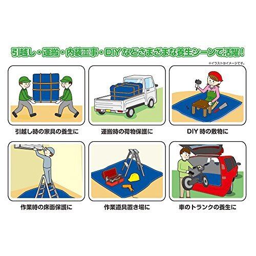 引越し・運搬・内装工事・DIYなど様々な養生シーンで活躍! 表/裏生地:ポリエステル100%、中綿生地:綿50%、ポリエステル50% 色:ネイビー(表)/ブルー(裏) サイズ:90cm×90cm