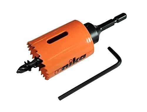 鋭い切れ味。軽快で快適な作業性。刃厚1mm。安全ストッパー(ツバ)を排除し、貫通穴に最適。木材・塩ビ・鉄板などの穴あけに。 6.35mm六角軸のため、インパクトドライバー・電気ドリルどちらでも使用可能。ボール盤使用不可。 刃先はコバルトハイスを採用したバイメタル構造。板厚38mmまで対応。シャンク:6.35mm六角軸。 口径:33mm。有効長:38mm。全長:112mm。対象資材:薄鉄板(3.2mm厚以下)・アルミ板(3.2mm厚以下)・塩ビ板・金属系サイディング・石膏ボード・木材・FRP板・樹脂板。