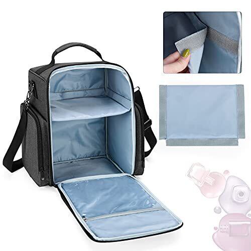 素材:このマニキュアケースは頑丈なナイロンで作られています。厚いパッドは、ボトルやネイルライトをしっかりと保護します。 メイン室:2つの取り外し可能なポーチ付きで、合計48本のマニキュアボトルを保管することができます。上部に取り外し可能な仕切りがあり、通常のネイルランプ(サイズ約24cm x 17.8cm x 11.4cm)を収納することができます。 ネイル道具収納:ゴムバンド付きの2つのサイドポケットにはネイルファイル、プッシャー、ブラシ、ニッパーなどのケアツールの収納に便利です。前ポケットと背面ポケットもあって、ほかのネイル道具もきちんと整理することができます。 持ち運び便利:旅行に便利な調節可能なショルダーストラップと頑丈なトップハンドルが付属しています。 寸法:(全体的に閉じた状態)24cm x 17.8cm x 29cm、(2つの同じサイズのポーチ)21.5cm x 15.9 x 8.9cm。