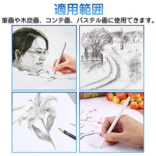 特徴:先端が尖っているため、狭い範囲や細かいところなど的確に擦ることができます。 紙ヤスリ:固体顔料を粉末に粉砕する。擦筆をきれいにする。 用途:擦筆さっぴつは描線を擦ってぼかしたり、濃淡を馴染ませたりするのに使う道具です。 便利:両頭の擦筆は、紙やすりで研磨して再使用することができます、または直接汚れた紙をペン先に沿って剝離してきれいにします。 適用範囲:筆画や木炭画、コンテ画、パステル画に使用できます。