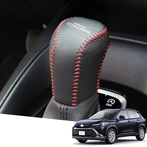 新型カローラクロス(Corolla Cross) ZSG10 ZVG11 ZVG15 10系(2021年9月~)専用本革材質シフトノブカバー 内装カスタムパーツ アクセサリー爪キズ防止 取り付け簡単 車種専用設計(黒(赤ステッチ))