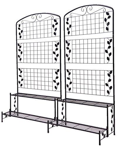 リビングアウト(Living Out) フェンス付きフラワースタンド2段 ブラック 幅80×奥行40×高さ162cm 2台組 重量: 5.3kg プランター おしゃれ ガーデニング インテリア プランターの整理整頓 縦の空間演出