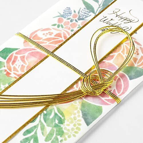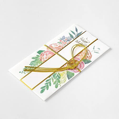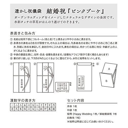 水彩タッチの草花がほんのり透ける祝儀袋 【サイズ】H185×W100mm 【内容】1枚入〔中袋付〕、短冊〔HappyWedding、御結婚御祝、無地:各1枚〕、表書きと包み方解説付 金額目安:2~6万円