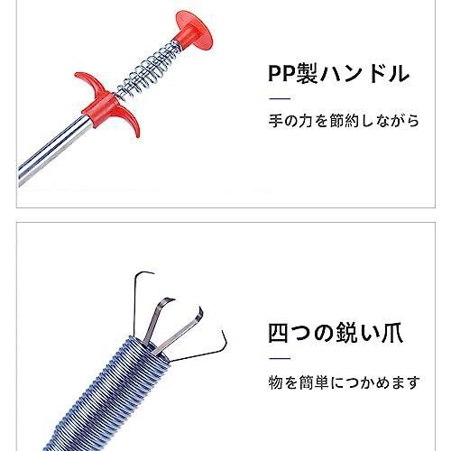 【柔軟性】お手軽に伸ばせるフレキシブル構造と四爪抓爪で、物を簡単につかめます。手の力を節約しながら、操作も簡単です。 【使いやすい】160cmの長さと柔軟なスプリング付きケーブルで、狭い場所も清潔にすることができます。橡皮包みのスチールワイヤーは生錆しにくく、小さなものもしっかりつかめる設計です。 【四つの鋭い爪】頑丈なスプリングと付属のグラバー爪で、偶発的な落下を防止できます。トイレやシンクなど、さまざまな場所で使用できます。 【省時・省力】手元のレバーを握ることで、ワイヤー先端のクリップ爪が広がり、髪の毛やゴミなどをしっかりキャッチ!レバーを戻せば爪が戻るので、つかんだ物を放しません 【万能】キッチン、お風呂、浴室、トイレなどさまざまな場所で使用できます。耐久性に優れたPP+不锈钢材质を使用しており、普段から手軽に清潔にすることができます。